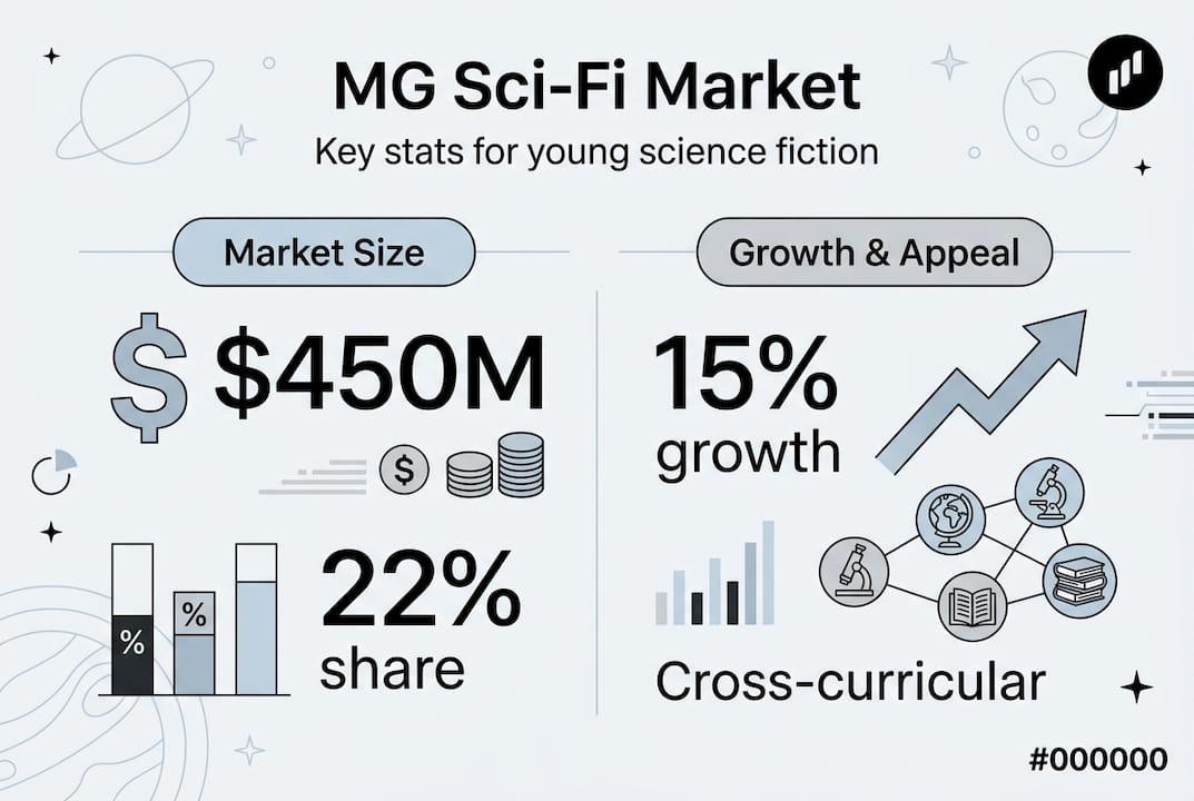 US MG fiction sales $450M in 2023; 22% children's revenue share; 15% dollar sales growth 2021-2022. This robust market reflects strong demand from parents, educators, and young readers themselves for quality middle grade content. The growth trajectory indicates that middle grade is not just surviving in the digital age but thriving as families recognize the value of age-appropriate literature.